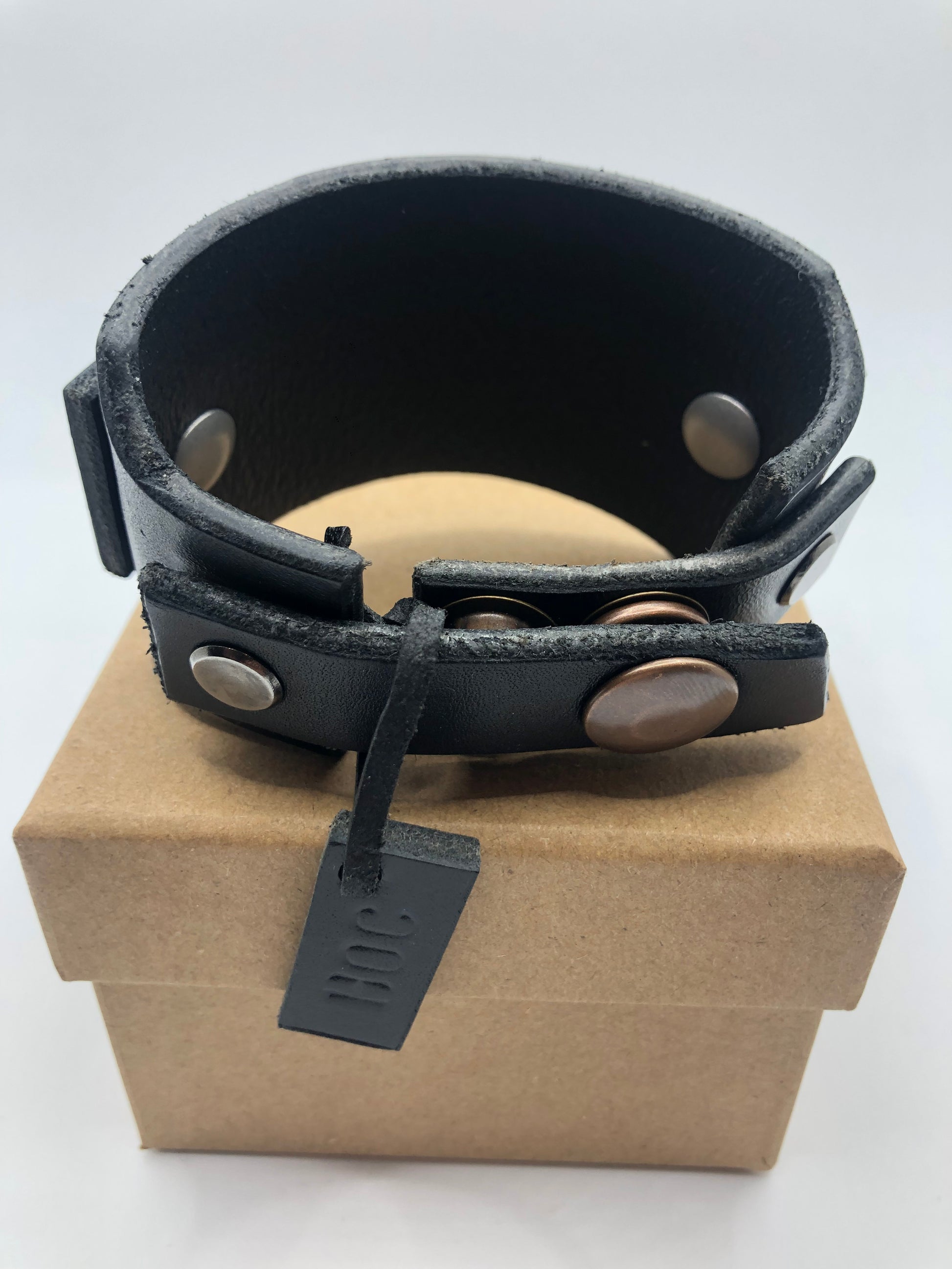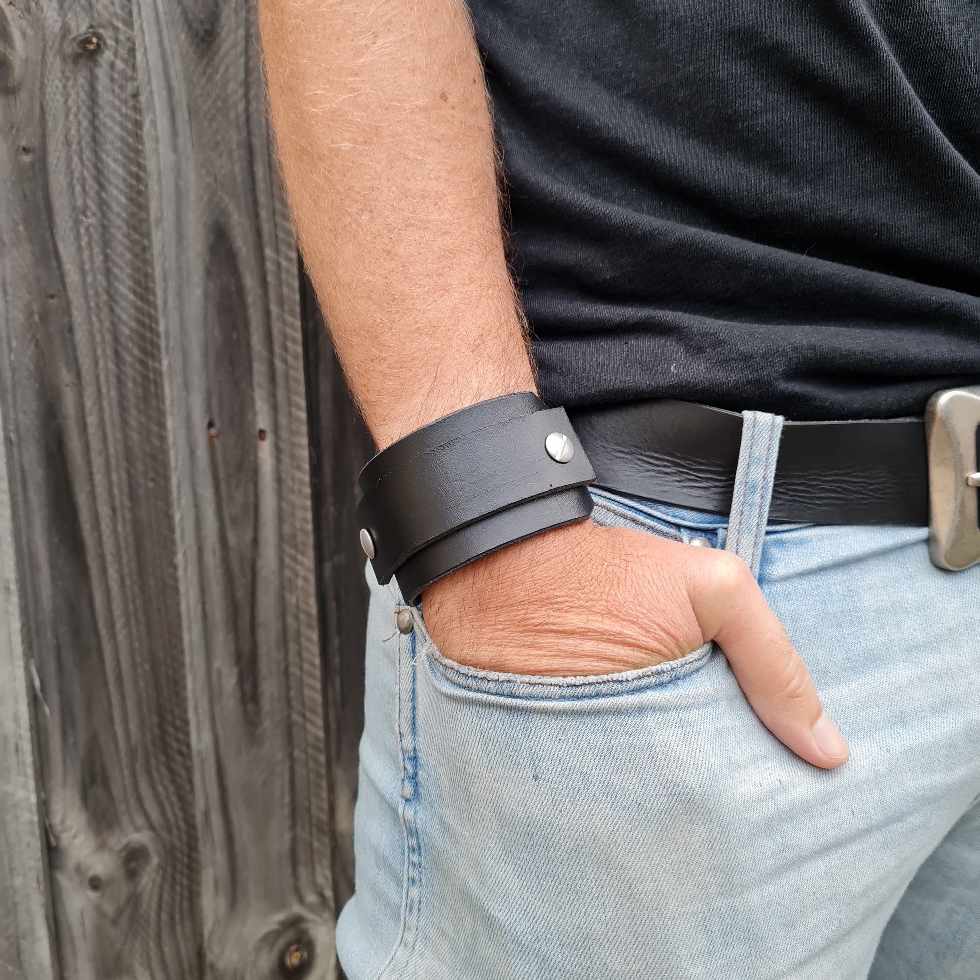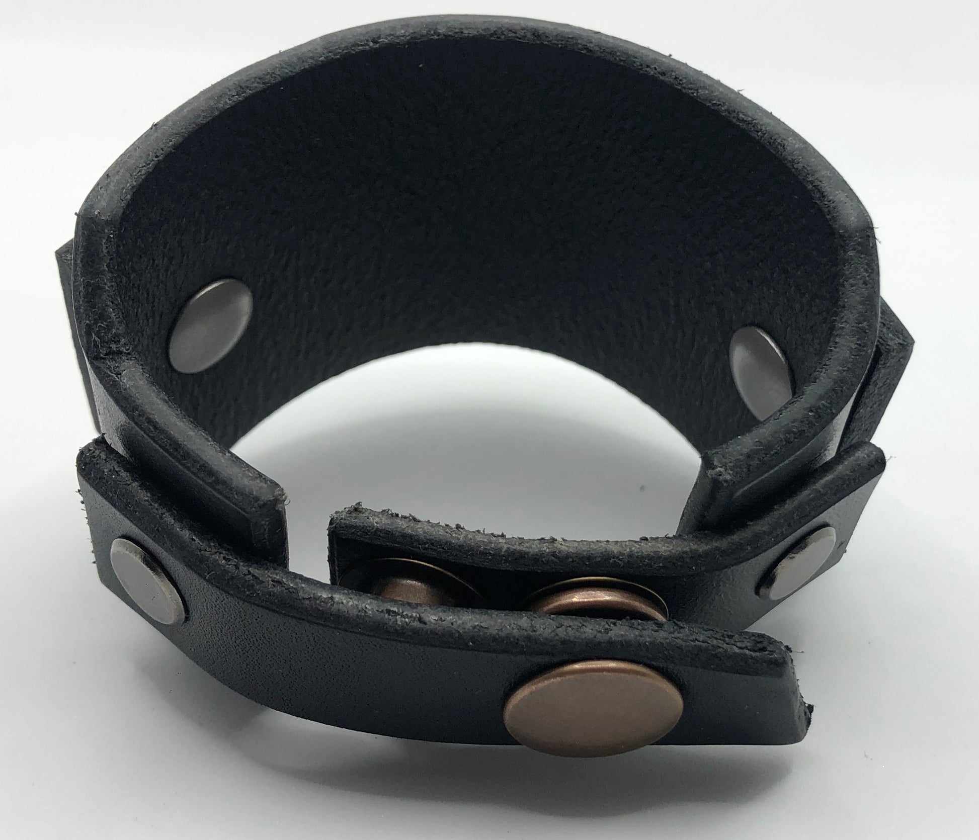 Black Single Strap Wristband / Bracelet - Extra Thick Leather