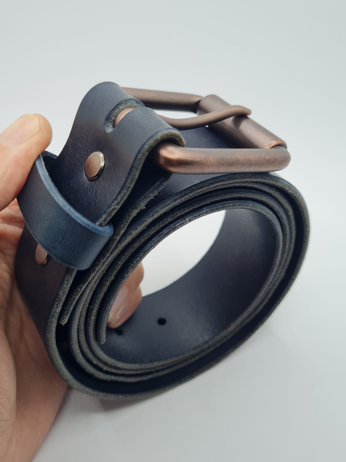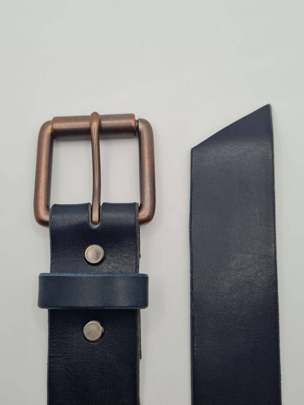 Como - Dark Blue Leather Belt with Vintage Copper Buckle