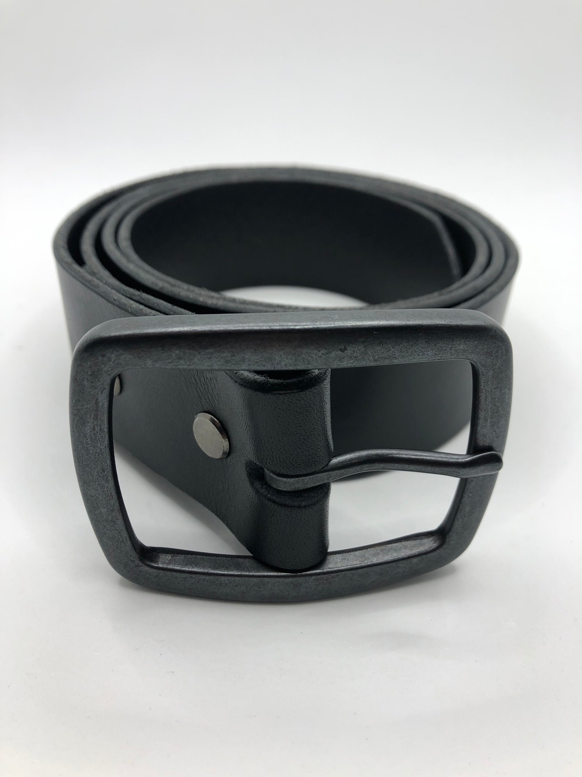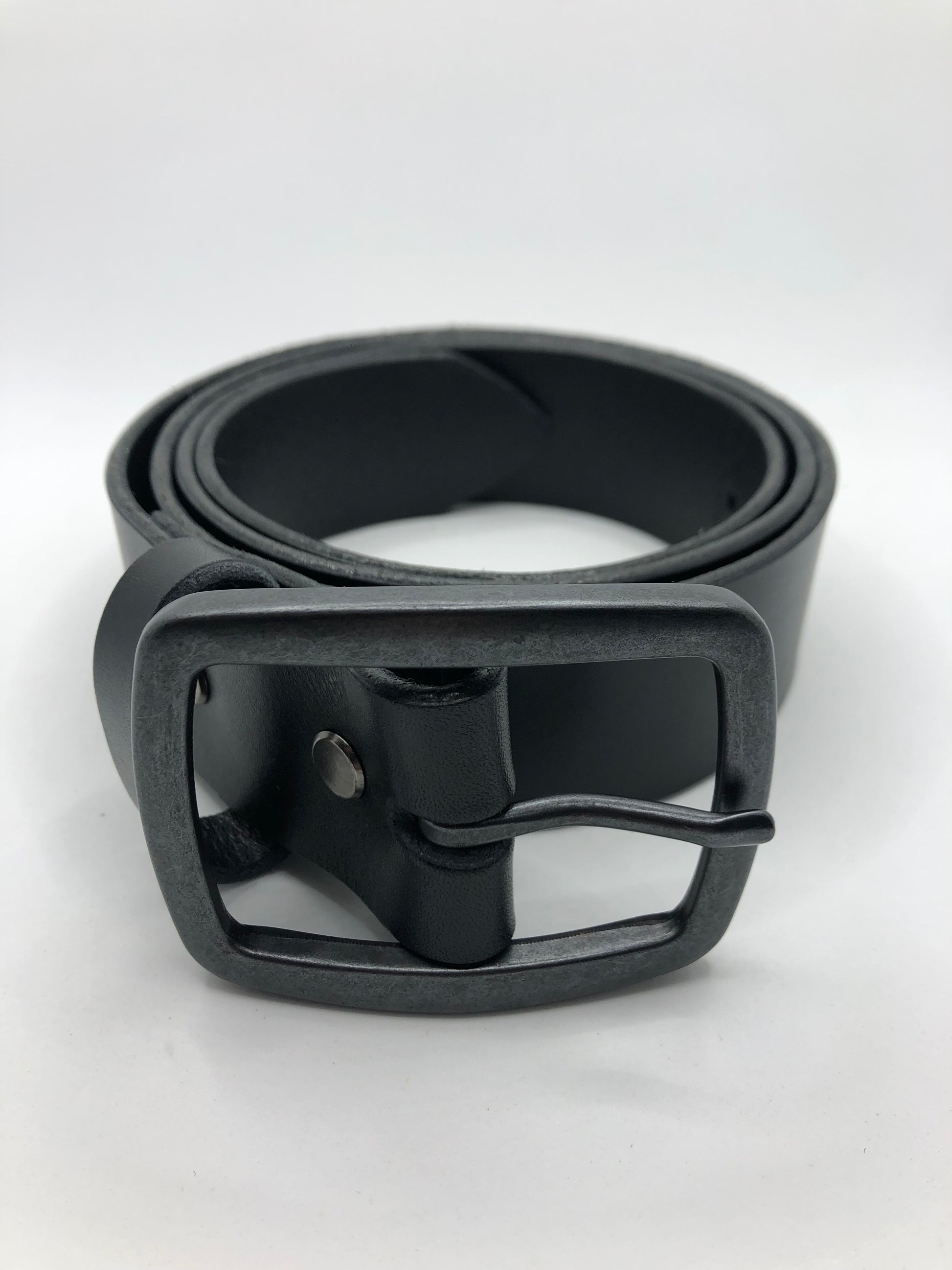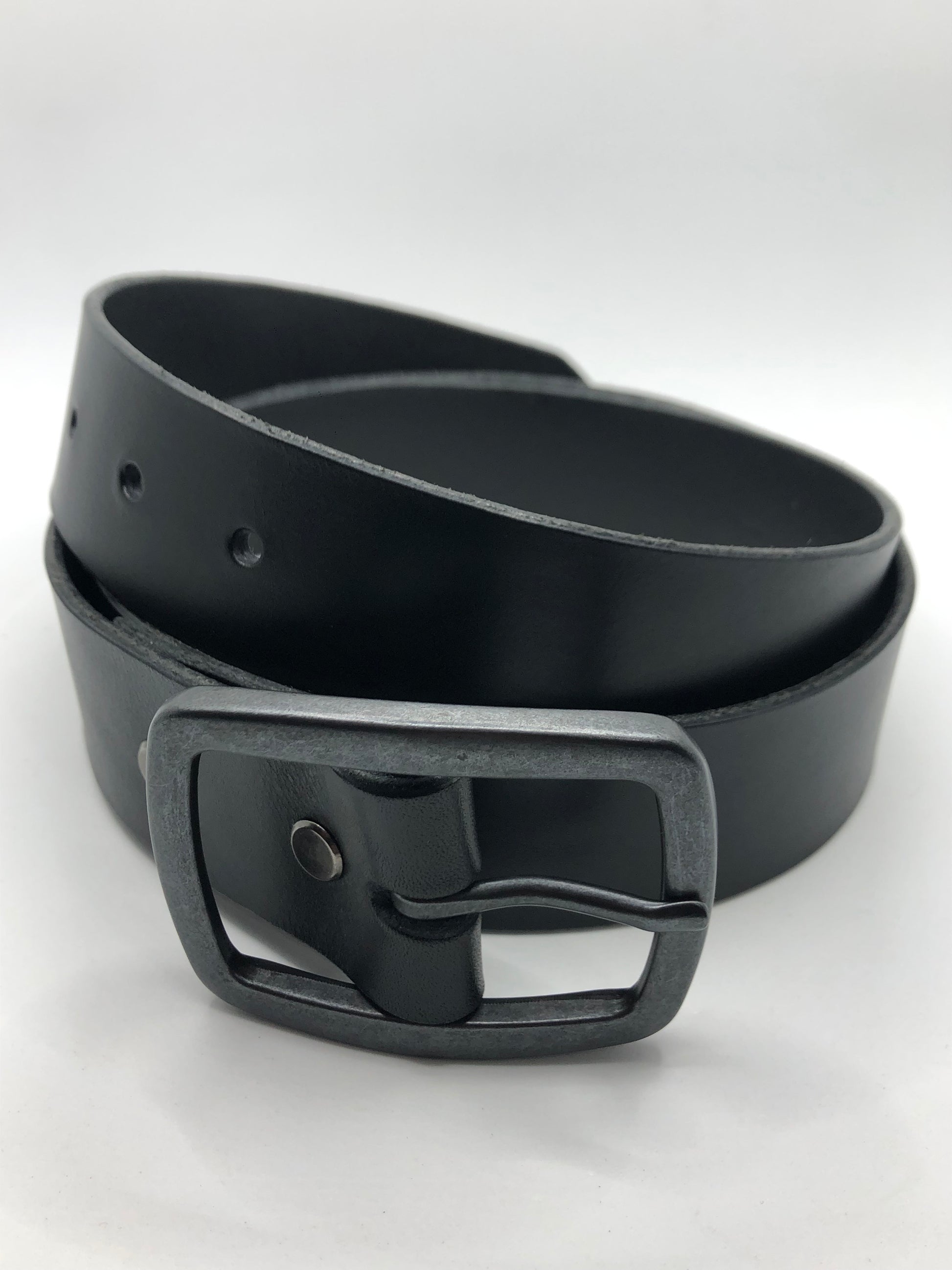 Milano - Classic Black Leather Belt with a minimal and rugged style. Suitable for casual or formal wear. Handcrafted using full grain premium vegetable tanned Italian leather and solid metal alloy buckle with a charcoal black finish. The belt edges have been hand burnished with bees wax for a smooth finish. Buckles are secured with solid brass removable Chicago screws. Photos show an English Point tail style.