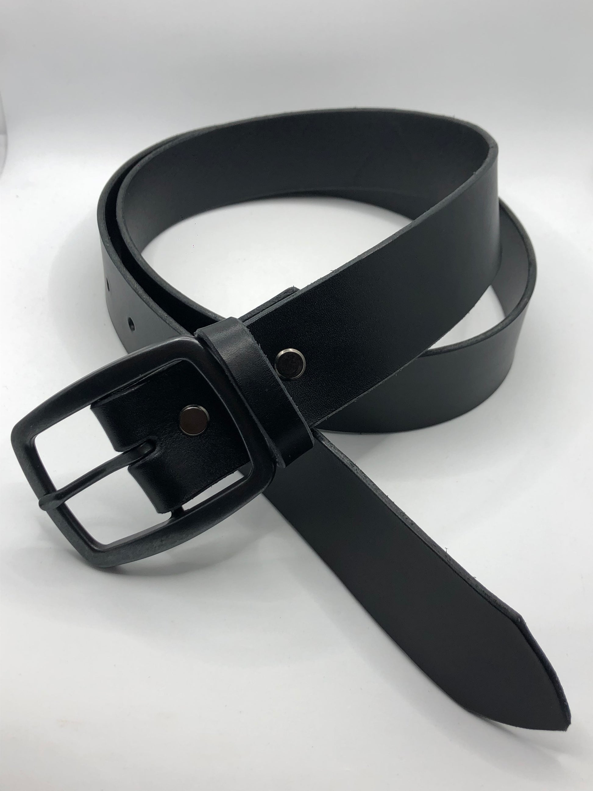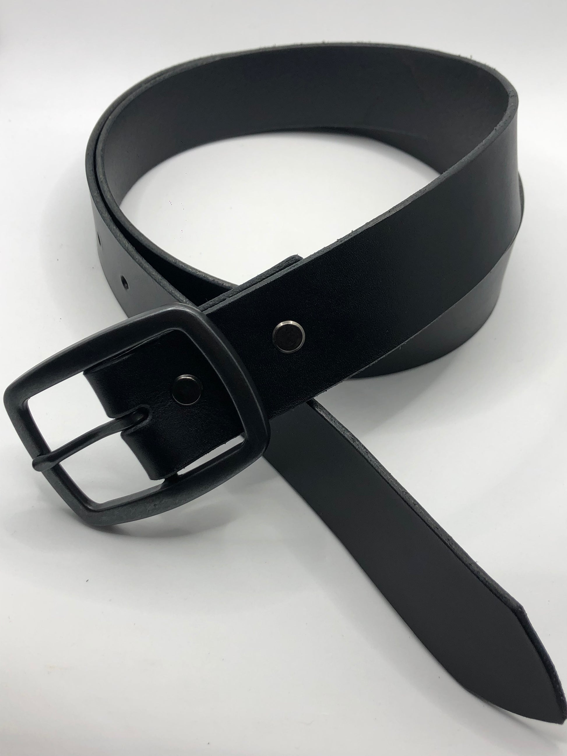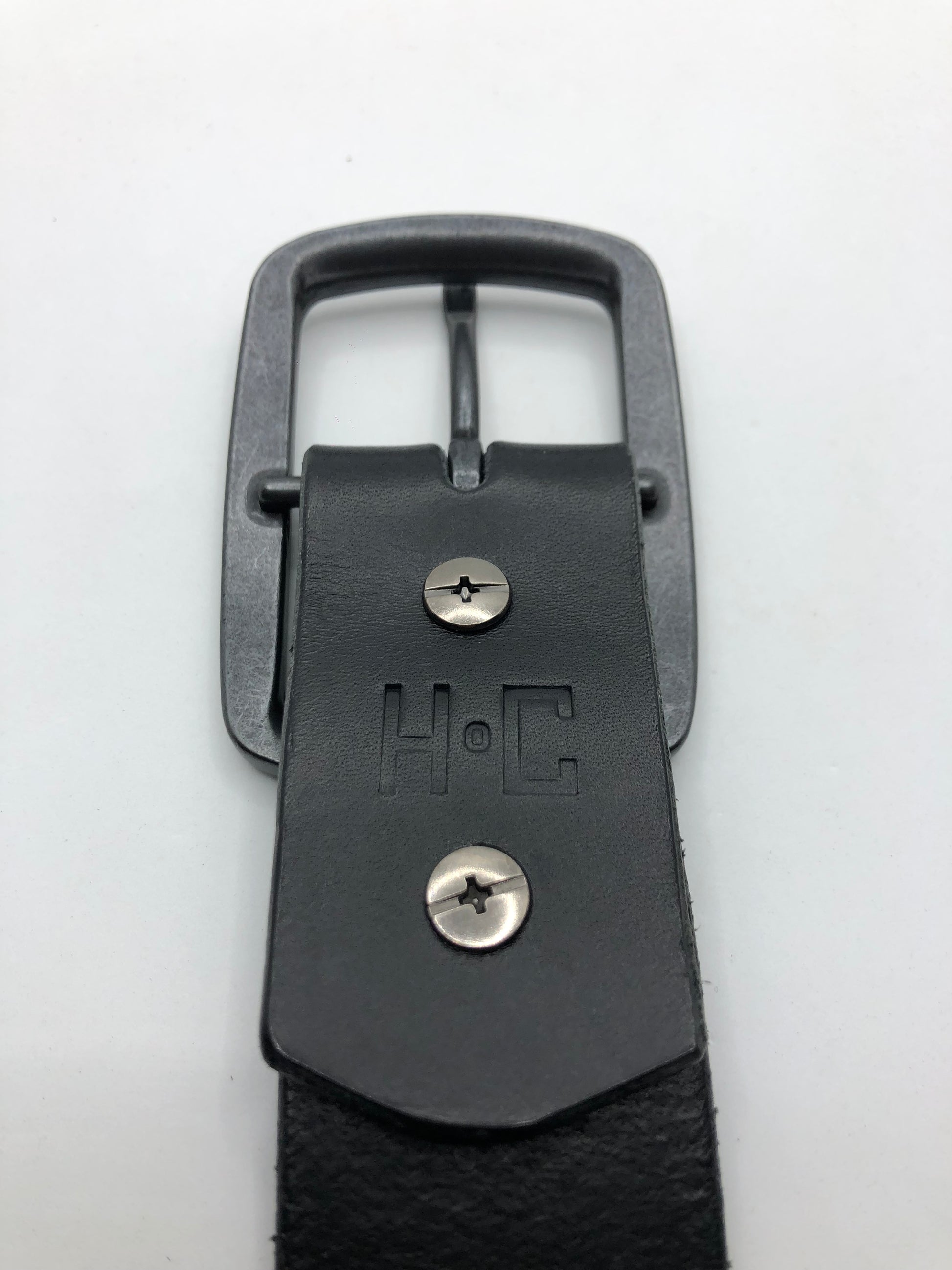 Milano - Classic Black Leather Belt with a minimal and rugged style. Suitable for casual or formal wear. Handcrafted using full grain premium vegetable tanned Italian leather and solid metal alloy buckle with a charcoal black finish. The belt edges have been hand burnished with bees wax for a smooth finish. Buckles are secured with solid brass removable Chicago screws. Photos show an English Point tail style.